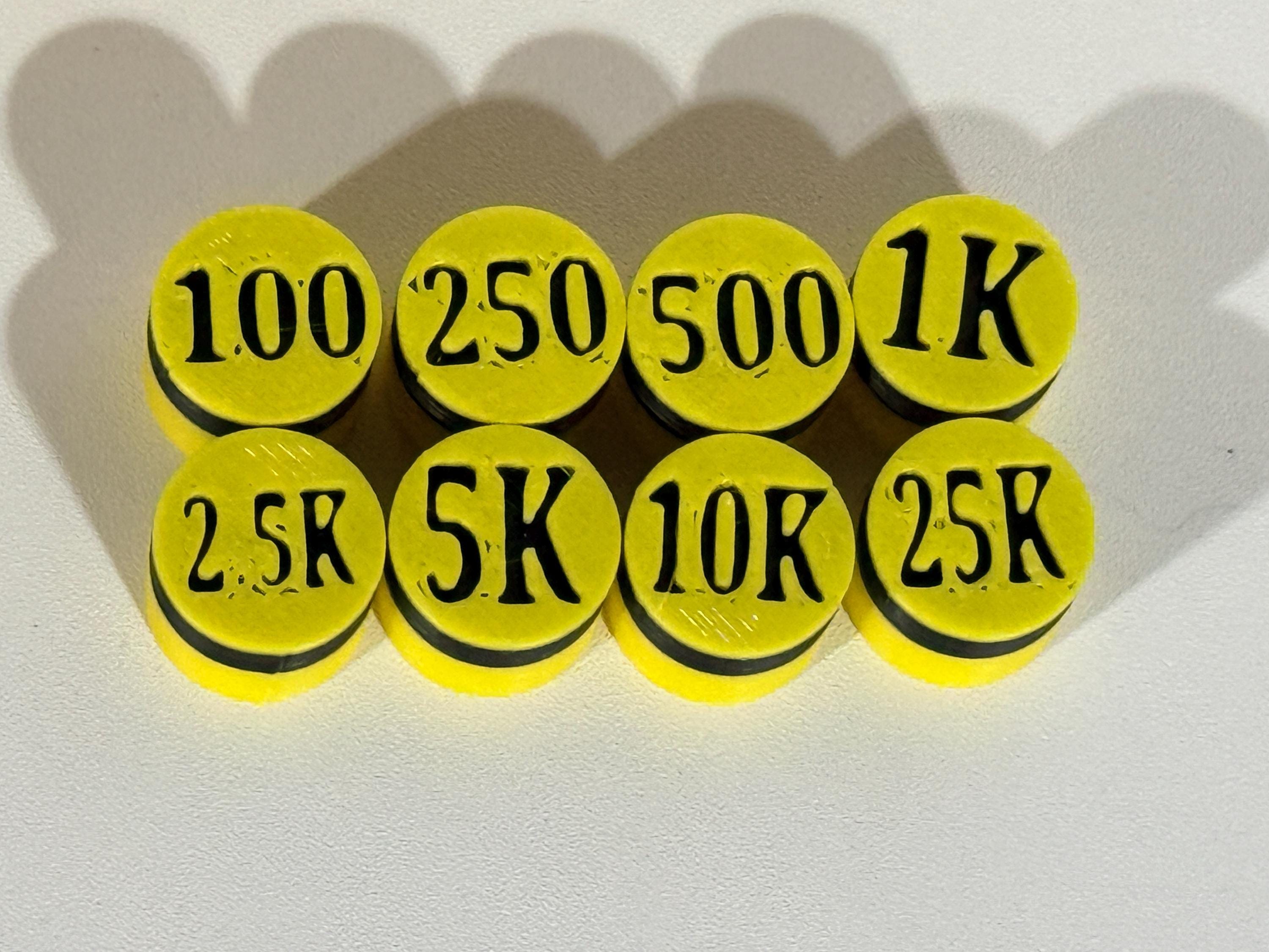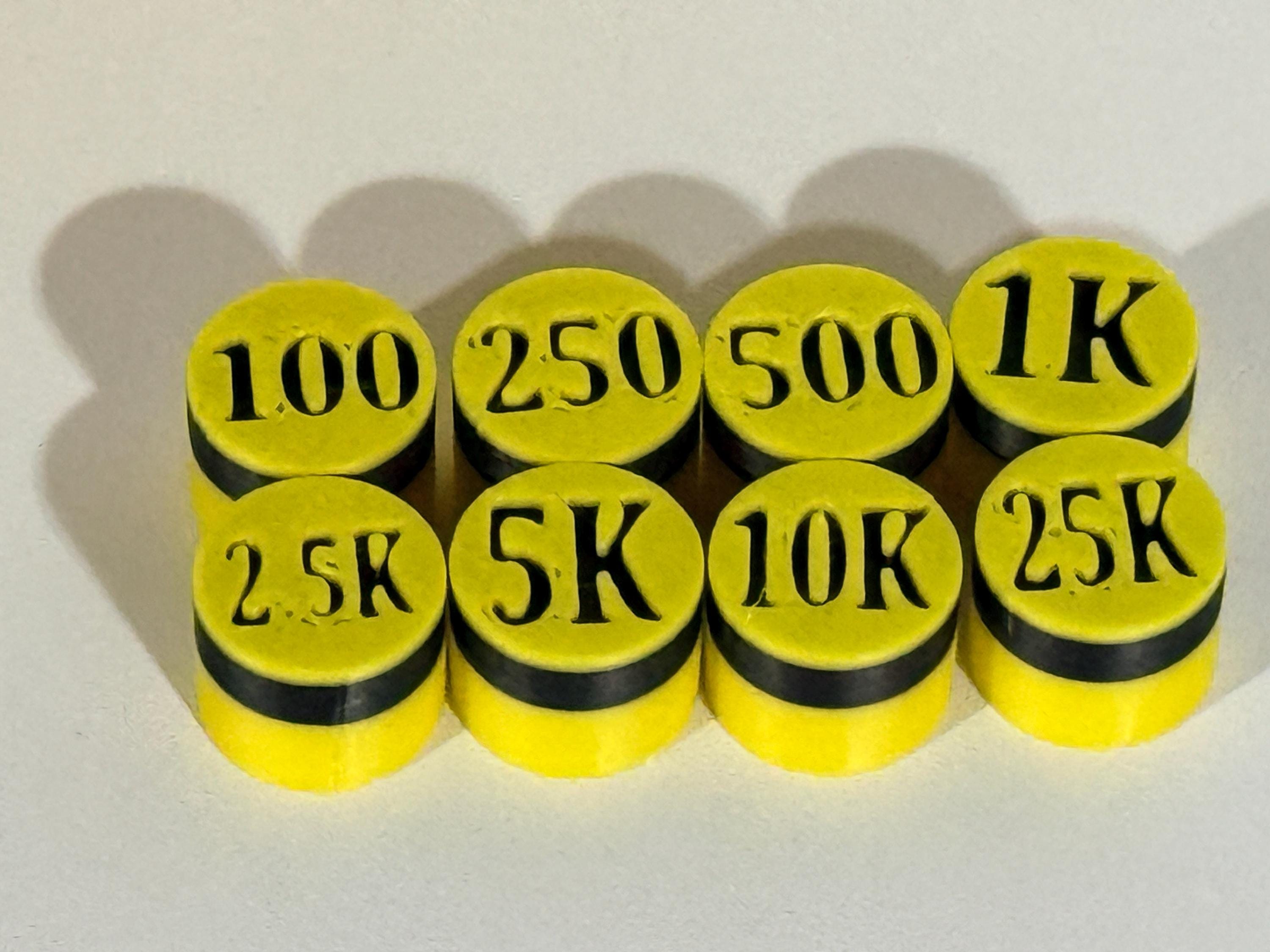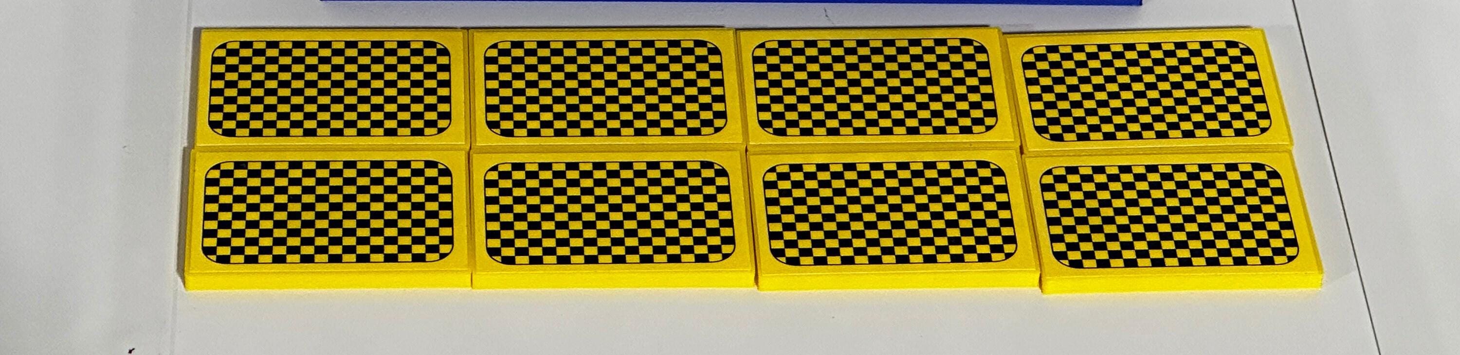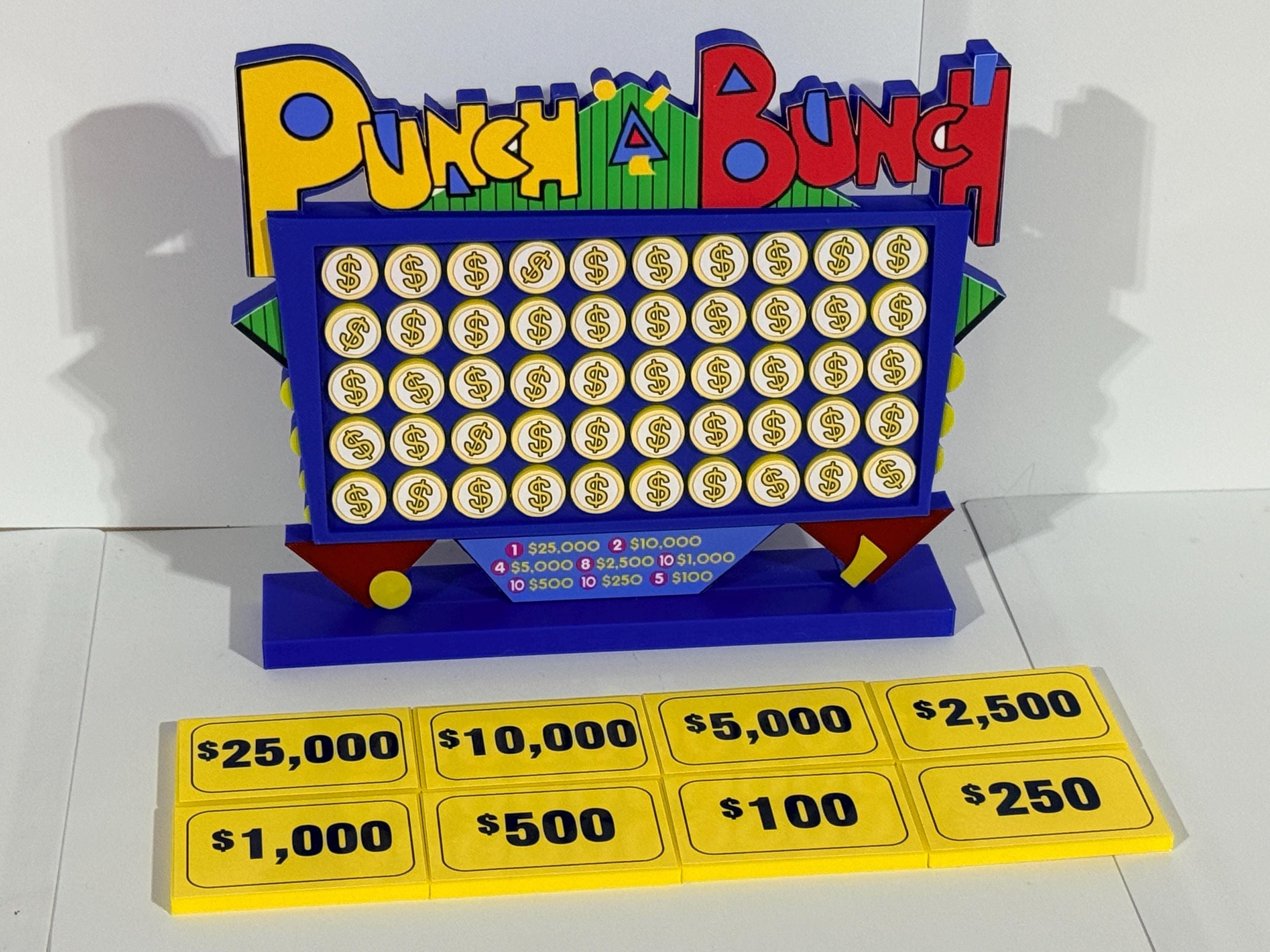 The winning amounts are printed on the backside of the $ sign peg. Also included are cards with the amounts as you would see on the show. These cards do not fold. They include a checkboard graphic on the backside that is similar to what you see on the show.