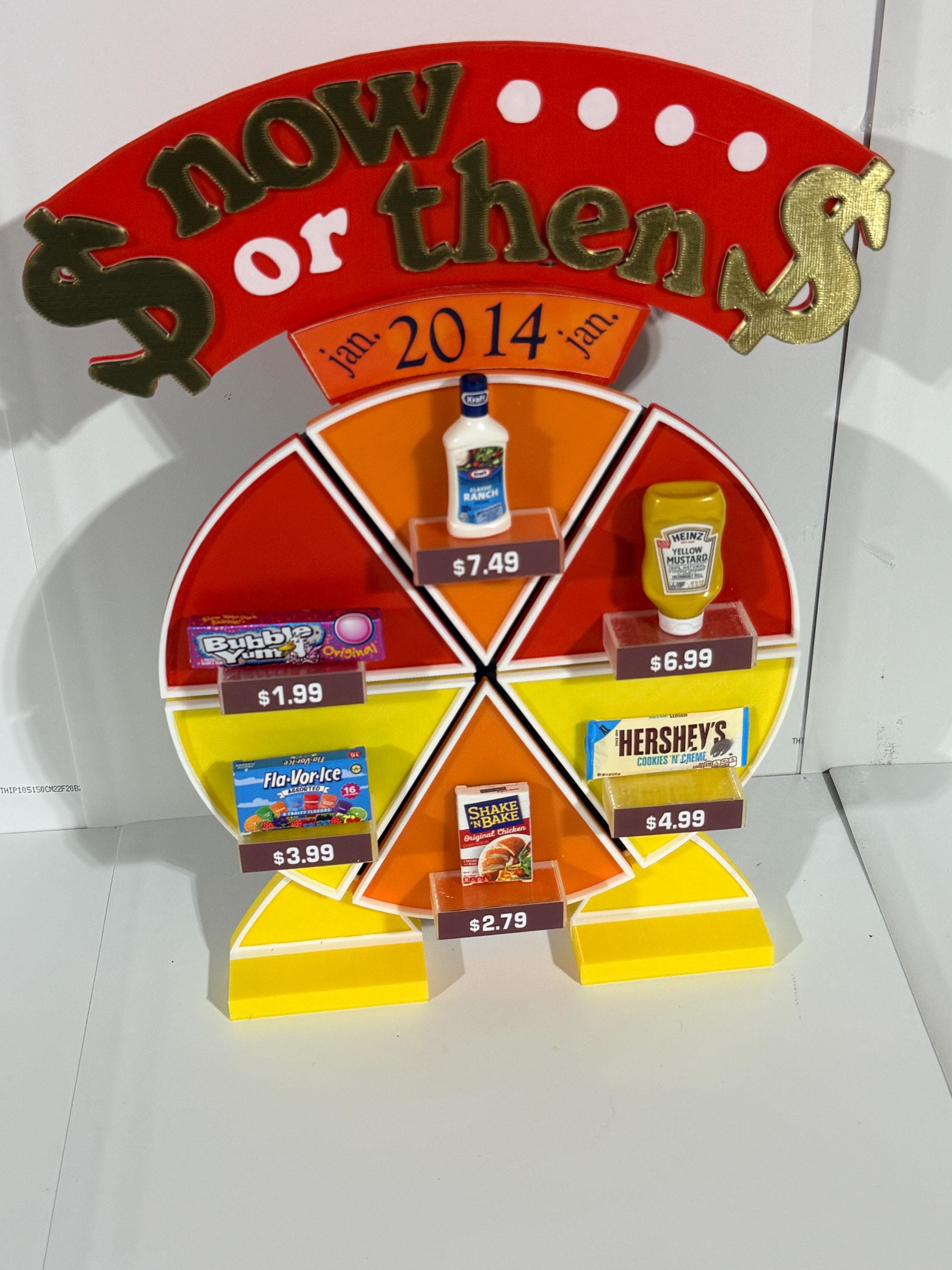 The Price is Right NOW or THEN including 6 random grocery items - 11.5 inches high x 7 inches wide x 1.5 thick.