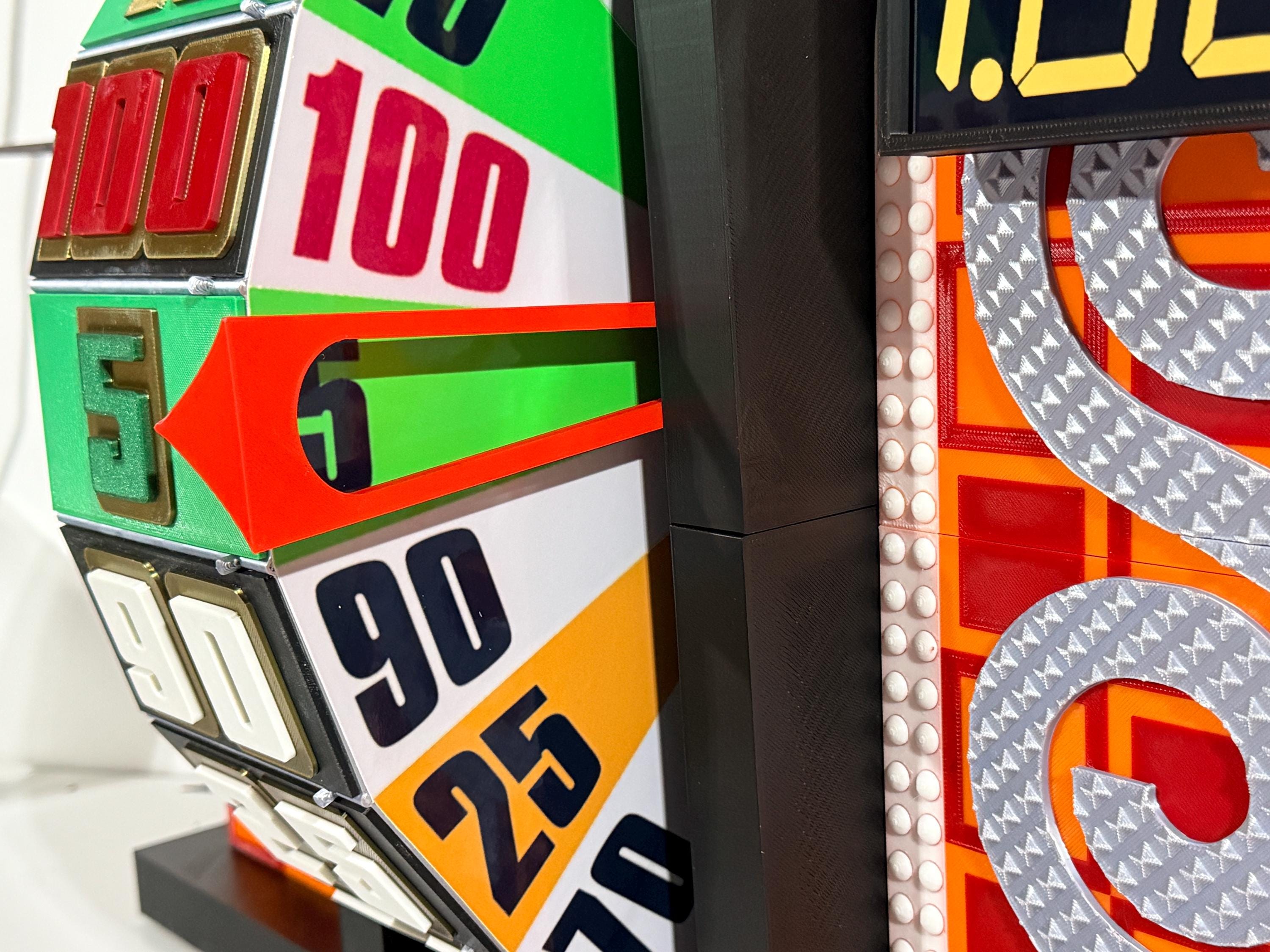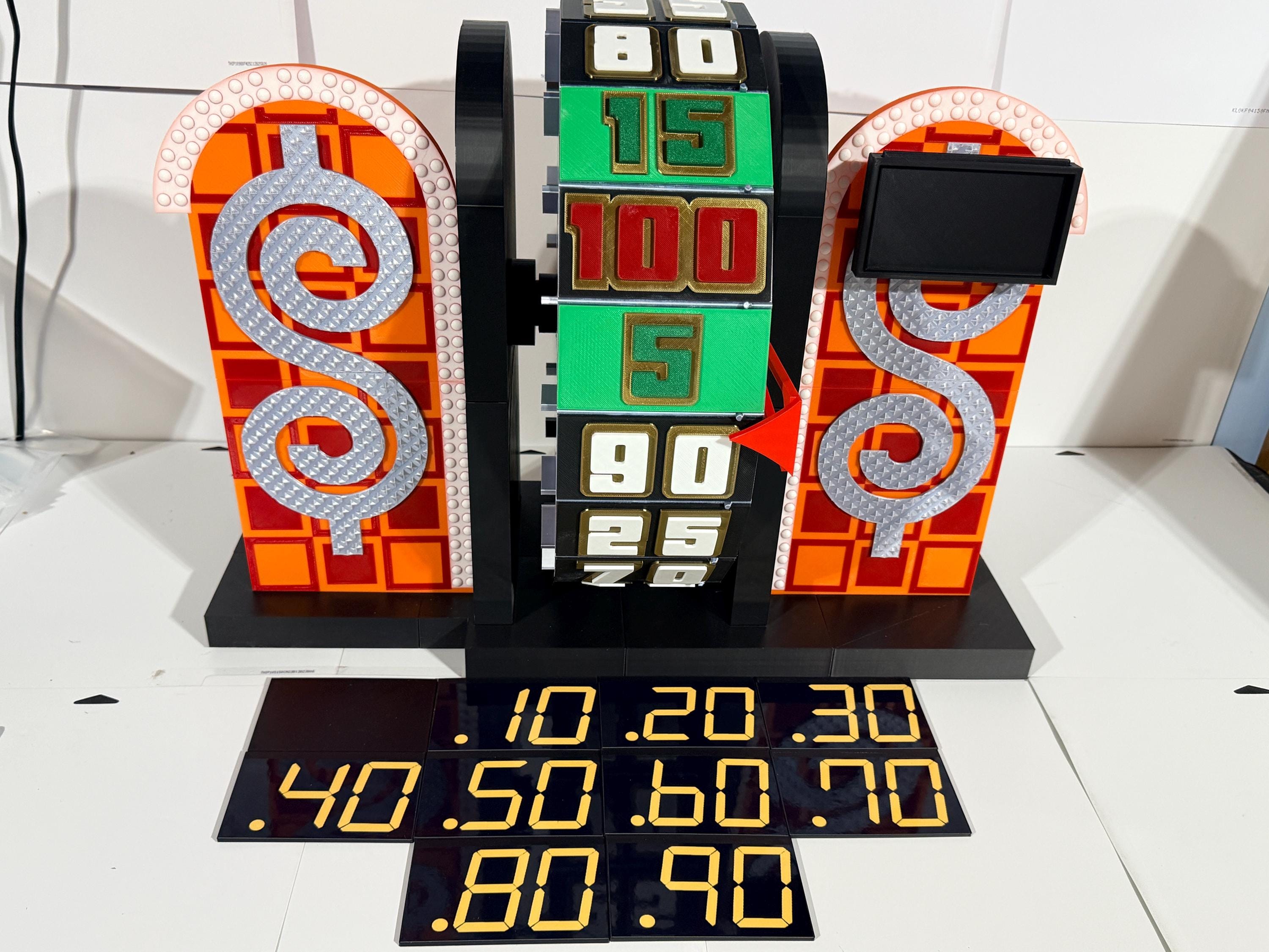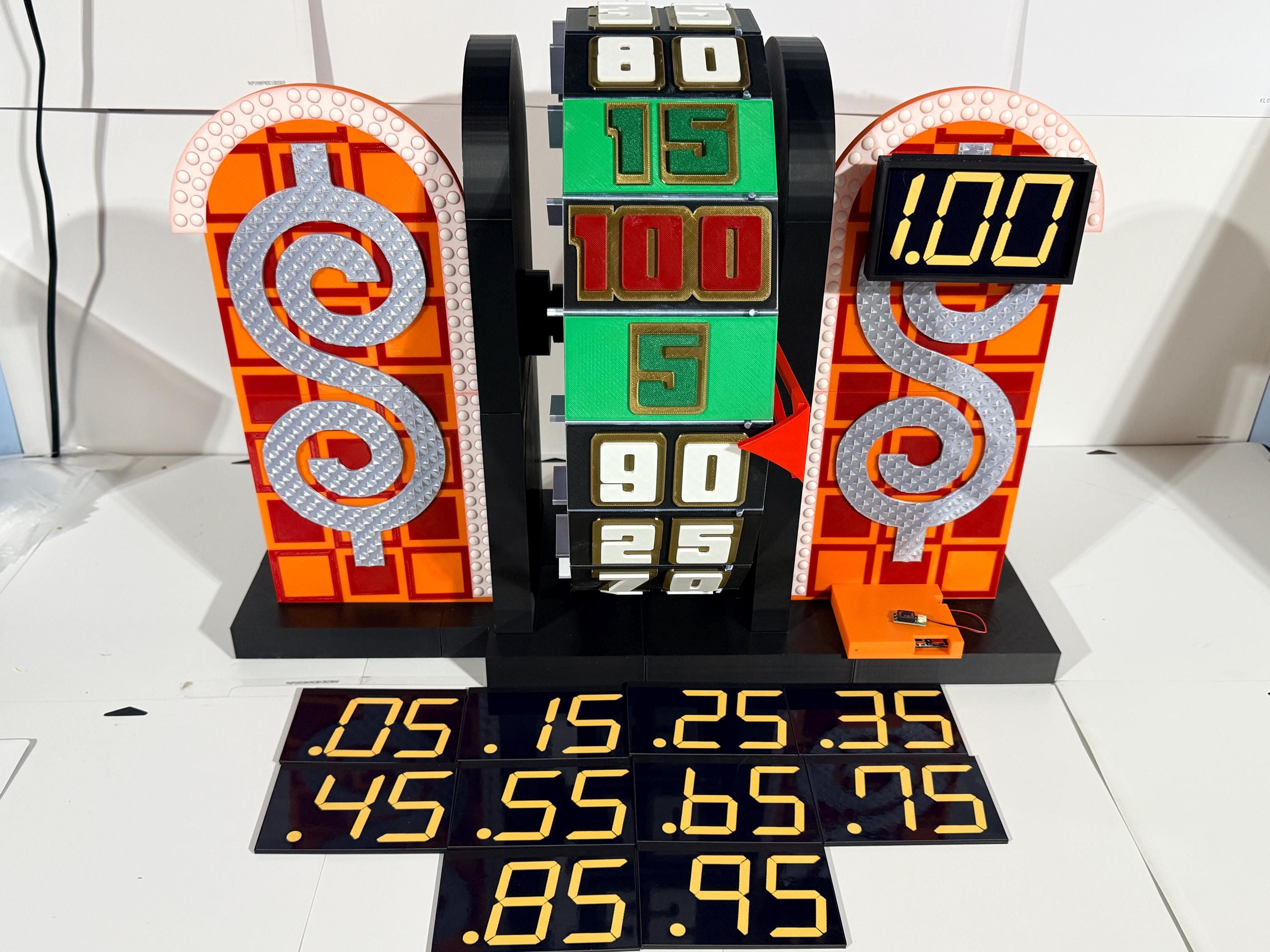 Visit my Facebook page www.facebook.com/AandM3DPrints/ to see the wheel with an optional sound add-on. You press the button to hear the beeps. The beeps do not align with the wheel pegs passing the arrow. It is a recording.