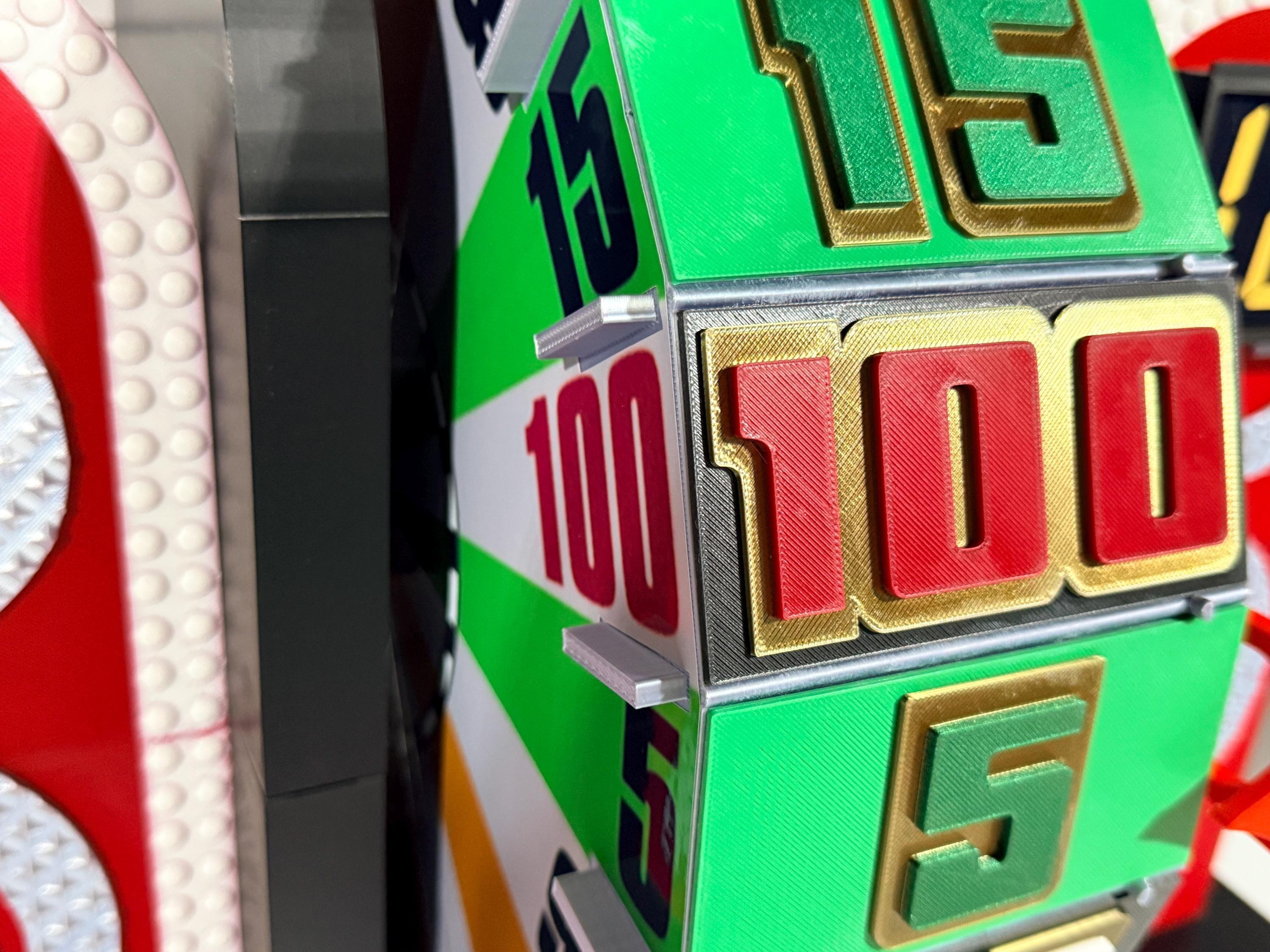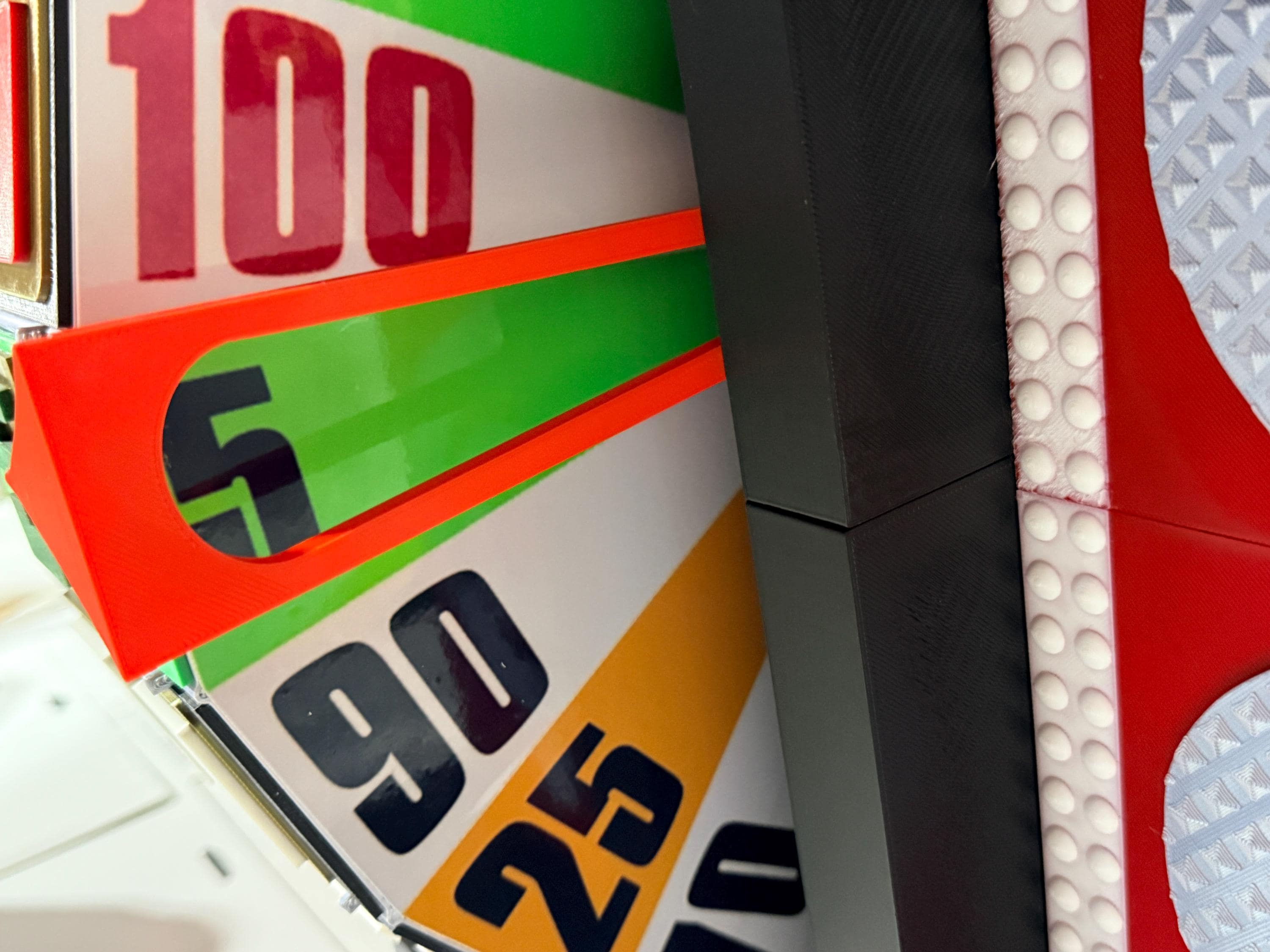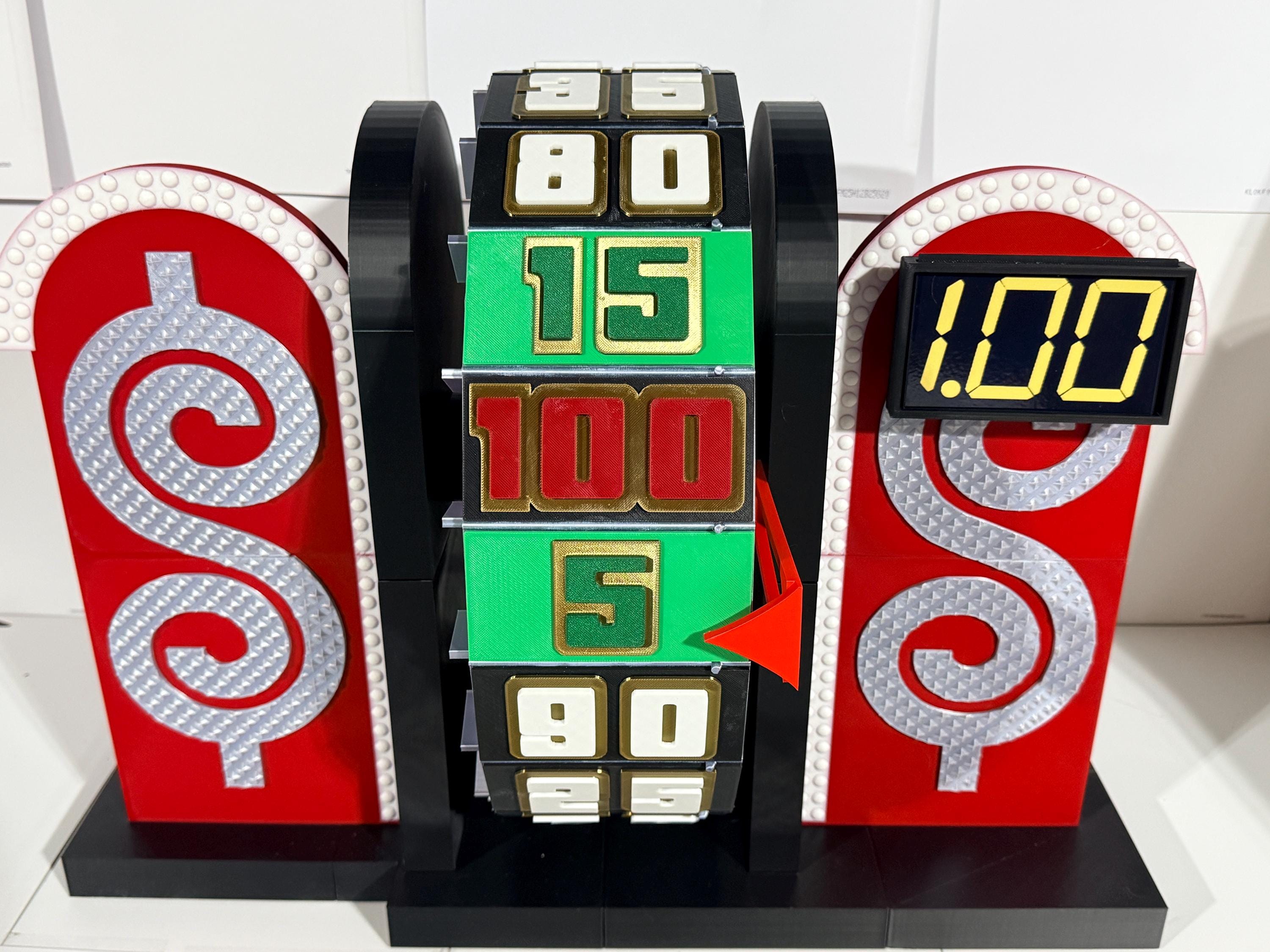 Visit my Facebook page www.facebook.com/AandM3DPrints/ to see the wheel with an optional sound add-on. You press the button to hear the beeps. The beeps do not align with the wheel pegs passing the arrow. It is a recording.